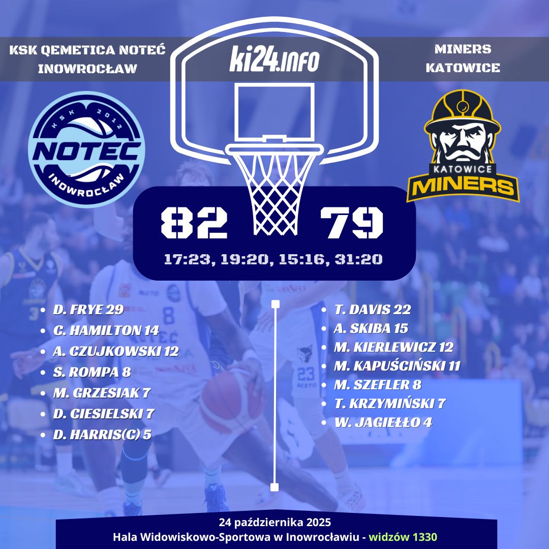 Czas na 7. kolejkę rozgrywek koszykarskiej I ligi. KSK Qemetica Noteć Inowrocław podejmowała dziś ekipę Miners Katowice. Biało-Niebiescy, póki co z bilansem dwóch zwycięstw i czterech porażek nie zachwycają. Spotkanie z drużyną ze Śląska to doskonała okazja do podreperowania dorobku punktowego i, co tu dużo mówić, wizerunku.