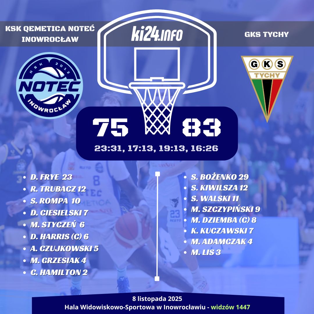 Dzisiaj KSK Qemetica Noteć Inowrocław podejmowała w swojej hali GKS Tychy.