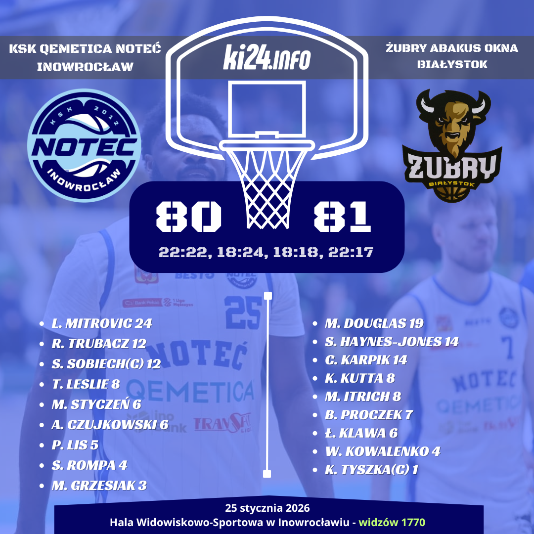W miniony piątek pojawiła się jednak informacja o transferowym hicie. Na liście zawodników Noteci pojawił się Travis Leslie - niegdyś zawodnik drużyny NBA Los Angeles Clippers, w przeszłości grający też m.in. w barwach Legii Warszawa. KIbice w Inowrocławiu czekali więc na udany debiut w dzisiejszym meczu z Żubrami Abakus Okna Białystok.