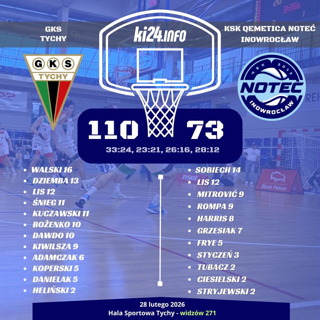 Trzy zwycięstwa w ostatnich meczach były jak tlen dla drużyny KSK Qemetica Noteci Inowrocław. W sobotnie popołudnie Biało-Niebiescy stanęli przed trudnym zadaniem. W Tychach nasi mierzyli się z jedną z silniejszych ekip 1. ligi - GKS-em.