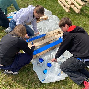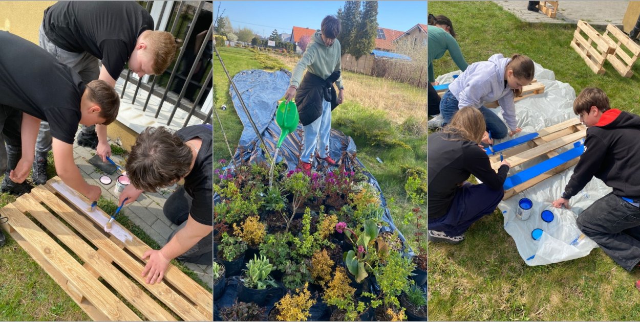 Ważnym elementem projektu jest też praktyka. Dzieci i młodzież samodzielnie tworzą elementy małej architektury, wykorzystując m.in. palety. Powstają z nich siedziska i proste konstrukcje, które pokazują, że recykling może mieć realne zastosowanie, a nie być tylko teorią z podręcznika.