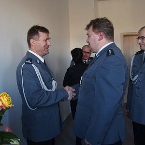 Komendant Powiatowy Policji w Inowrocławiu mł. insp. Mirosław Elszkowski podziękował policjantowi za wieloletnią pełną oddania służbę. Złożył życzenia zdrowia, pomyślności oraz spełnienia wszelkich planów i zamierzeń. Do życzeń dołączyli się obecni policjanci i pracownicy policji. Obecnie Wydziałem Ruchu Drogowego kieruje pełniący obowiązki Naczelnika kom. Sebastian Górski.