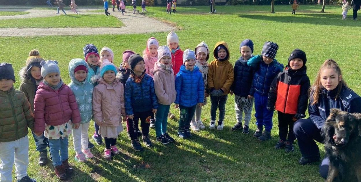Wczoraj (17.10.2023) w przedszkolu „Słoneczko” zawitała inowrocławska przewodniczka psów policyjnych starszy sierżant Kinga Lewandowska wraz z psim partnerem Jogim.