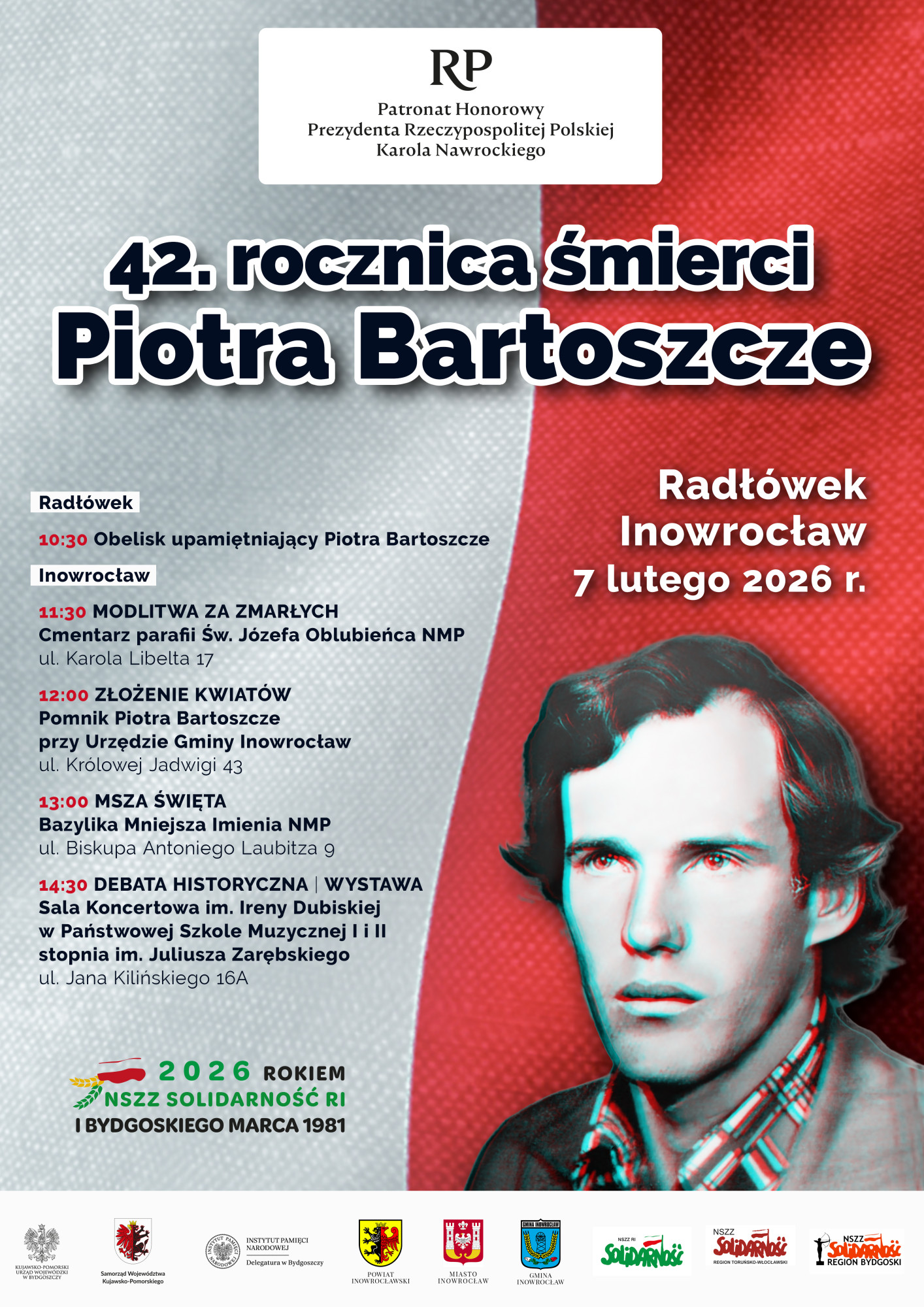 Obchody rozpoczną się o godz. 10.30 w Radłówku, gdzie uczestnicy złożą kwiaty przy pomniku upamiętniającym Piotra Bartoszcze. Następnie zaplanowano przejazd na cmentarz parafii św. Józefa Oblubieńca NMP w Inowrocławiu, gdzie odbędzie się modlitwa przy odnowionym nagrobku rodziny Bartoszczów.