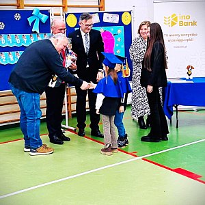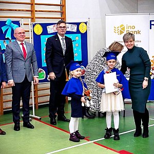 Rafał Mikołajewski, koordynator projektu, podkreślił szczególne podziękowania dla partnerów, którzy aktywnie uczestniczyli na każdym etapie przedsięwzięcia. Wyróżnił również panią Beatę Wierzbicką-Skroś, prezesa Ino Banku, za ufundowanie okolicznościowych biretów oraz pelerynek. Każde z 17 przedszkoli otrzymało również maskotkę Patrona. Pieski, przywiezione z Ukrainy, zostały ufundowane przez radnych Rady Miasta Inowrocław, Jarosława Kopecia i Patryka Kazimierczaka, oraz przez firmę ITBS sp. z o.o. Dodatkową radość przedszkolakom sprawiły słodkości przekazane przez posła Krzysztofa Brejzę oraz senatora Ryszarda Brejzę.