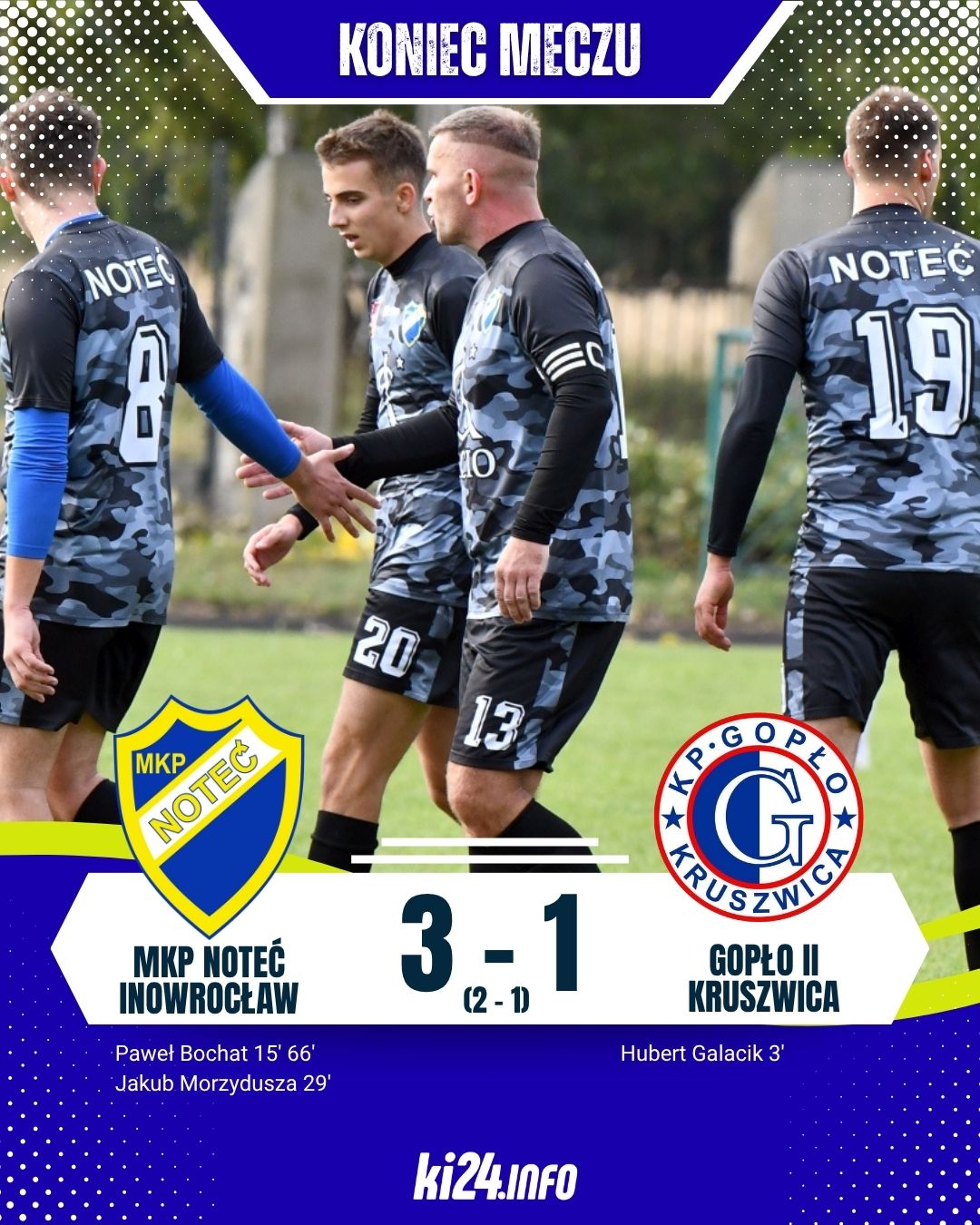 W sobotnim meczu, mimo niesprzyjających warunków pozasportowych, Noteć pokonała drugą drużynę Gopła Kruszwica 3:1.