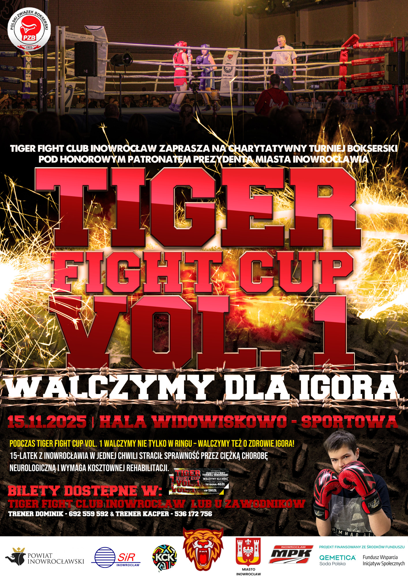 W ubiegłym roku zawodnicy Tiger Fight Club walczyli dla małego Ignasia. Teraz organizują kolejną edycję charytatywnej gali, by wesprzeć Igora. Chłopiec wymaga długotrwałej rehabilitacji i kosztownej terapii, która nie jest refundowana.