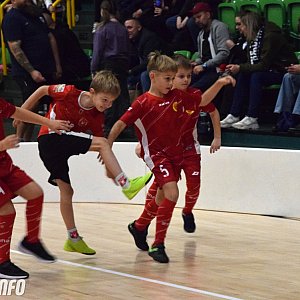 Na parkiecie rywalizuje 150 małych piłkarzy z dwóch kategorii wiekowych, a trybuny wypełniają się kibicami.