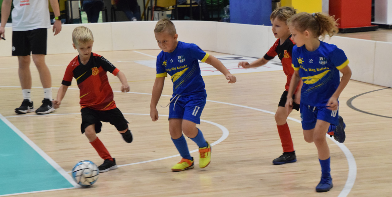 Dzieci grają w futsal na bandach — tempo meczu jest szybkie, akcje dynamiczne i praktycznie nie ma przerw. Widać emocje, radość i prawdziwą wolę walki.