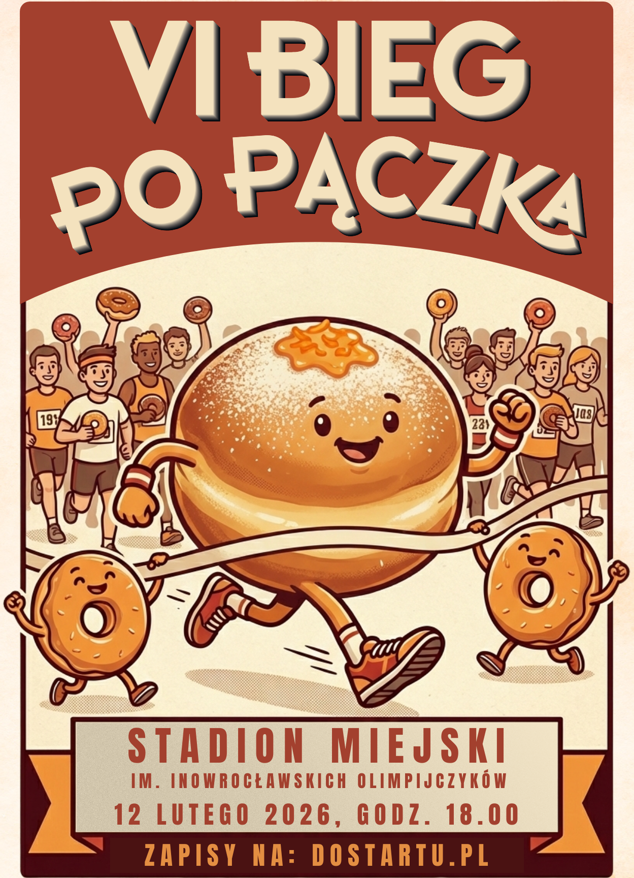 W Inowrocławiu ruszyły zapisy na VI Bieg po Pączka – biegową imprezę organizowaną w formule Tłustego Czwartku. Zawody odbędą się 12 lutego, a start zaplanowano na godz. 18.00. Bazą wydarzenia będzie Stadion Miejski im. Inowrocławskich Olimpijczyków, gdzie zlokalizowano start i metę.