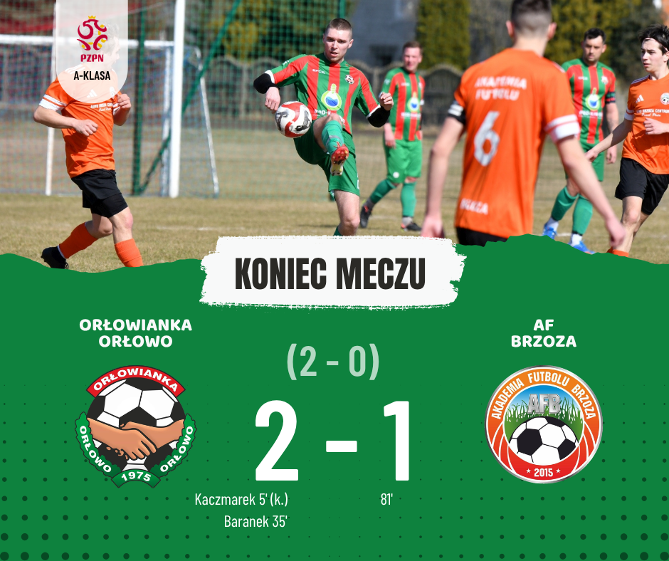 Po zmianie stron rywale z Brzozy ruszyli do odrabiania strat i zdołali zdobyć bramkę kontaktową, jednak Orłowianka nie pozwoliła już sobie odebrać prowadzenia. Końcówka była nerwowa, ale gospodarze dowieźli wynik do końca.