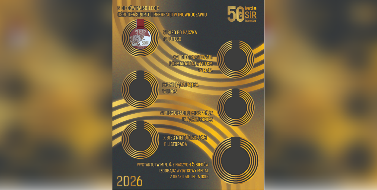 Z okazji 50-lecia działalności Ośrodka Sportu i Rekreacji w Inowrocławiu przygotowano specjalny cykl pod hasłem „5 biegów na 50-lecie OSiR”. To propozycja dla tych, którzy lubią ruch, atmosferę sportowych wydarzeń i chcą potraktować cały sezon jako jedno większe wyzwanie.