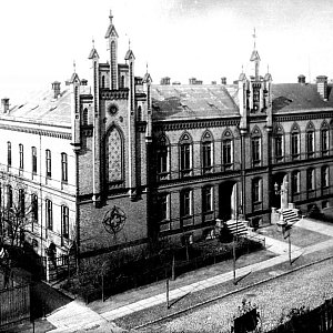 16 września 1886 roku oddano do użytku Pierwszą Miejską Szkołę im. Jerzego przy ul. Staszica. W tym dniu odbyło się pierwsze uroczyste posiedzenie Rady Miejskiej. Posiedzenia te w najbardziej reprezentacyjnych wówczas pomieszczeniach miasta, odbywały się przez 19 lat do roku 1905. Szkoła Jerzego ? I szkoła miejska ? przeznaczona była wyłącznie dla chłopców. Uczęszczały do niej polskie dzieci z Inowrocławia i pobliskich wiosek. Była to placówka 6-klasowa. Edukacja zaczynała się w klasie 6-tej, a kończyła w klasie pierwszej. Po osiągnięciu 14. roku życia zwalniano z obowiązku szkolnego. Przyjęć i zwolnień dokonywano przed Wielkanocą i przed wakacjami Świętomichalskimi. Przykładowo w 1889 roku do 20 oddziałów uczęszczało 1460 uczniów. W okresie Kulturkampfu (1871?1878) malała systematycznie liczba przedmiotów wykładowych w języku polskim. Od 1904r. wyłącznym językiem wykładowym był niemiecki. Kadrę pedagogiczną stanowili Polacy i Niemcy. Funkcję rektorów pełnili: Sceku (1886?1904), Kędzierski (1904), Knop (1904?1914) oraz Matschewski (1914?1918).