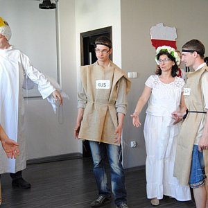 Szkolne przedstawienie z okazji Święta Flagi w inowrocławskiej bibliotece