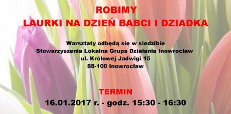 Stowarzyszenie Lokalna Grupa Działania Inowrocław organizuje po raz kolejny bezpłatne warsztaty dla dzieci w wieku 6-12 lat. Tym razem będzie można samodzielnie przygotować prezent dla babci i dziadka z okazji ich zbliżającego się święta.