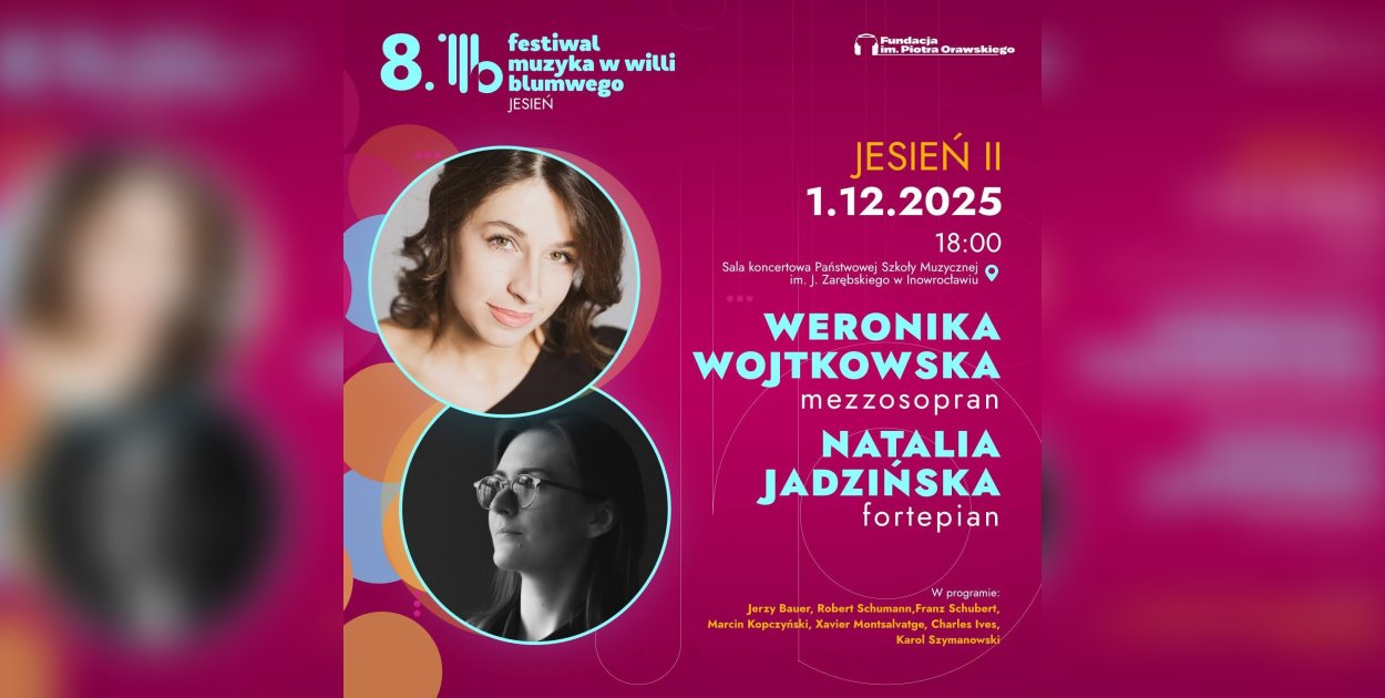 W poniedziałek, 1 grudnia o godz. 18:00 w Sali Koncertowej Państwowej Szkoły Muzycznej I i II st. w Inowrocławiu zabrzmi koncert „Jesień II”, realizowany w ramach 8. Festiwalu Muzyka w Willi Blumwego.