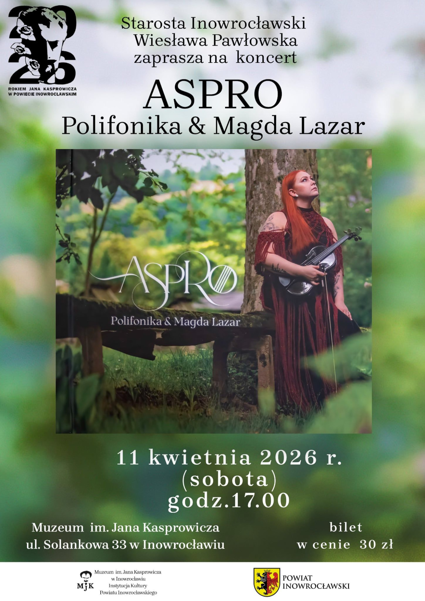 Na scenie pojawi się Magda Lazar wraz z zespołem Polifonika, prezentując utwory inspirowane twórczością Jana Kasprowicza. W programie znajdą się poezje oraz pieśni i kompozycje z płyty „Aspro”, które wypełnią przestrzeń muzeum wyjątkowym brzmieniem.