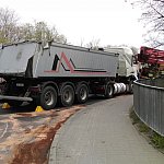 2 ciężarówki i osobówka zderzyły się na wiadukcie na Sz
