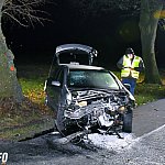 Policjanci ustalają okoliczności wypadku, w którym ranny został 26-letni kierowca opla.