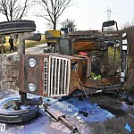 Kierowca ciągnika trafił do szpitala po zderzeniu z busem na drodze krajowej nr 62. Siła uderzenia była tak duża, że pojazd rolniczy został niemal doszczętnie zniszczony. Sprawa trafi do sądu, a 45-letni kierowca Renault odpowie za spowodowanie kolizji.