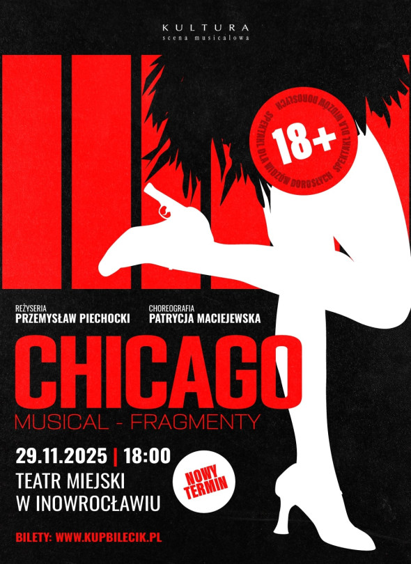 Legendarny musical, który podbił serca widzów na całym świecie, wraca na scenę w wielkim stylu! Intrygi, namiętność, zbrodnia i jazz - to wszystko już wkrótce zobaczysz na żywo! Nie przegap tej wyjątkowej okazji, by znów zanurzyć się w klimat lat 20., usłyszeć kultowe utwory i poczuć magię Broadwayu. Na scenie wystąpią wspaniali wokaliści, aktorzy i tancerze. Zobaczycie artystów, którzy występowali w spektaklu 15 lat temu oraz nowe wspaniałe twarze. Reżyser: Przemysław Piechocki Choreograf, koordynator musicalu: Patrycja Maciejewska Koordynator musicalu: Angelika Michalak Niech nie ominie Cię ten cały jazz! Zarezerwuj miejsce na widowni. Spektakl dla widzów pełnoletnich!
