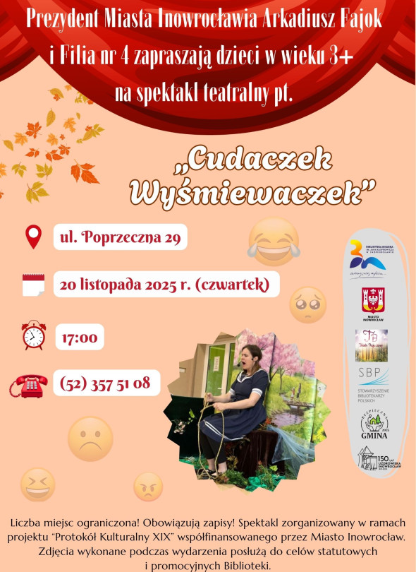 Wydarzenie przeznaczone jest dla dzieci w wieku 3+ wraz z opiekunami. Liczba miejsc ograniczona. Obowiązują zapisy osobiście w bibliotece lub pod nr tel. (52) 357 51 08.