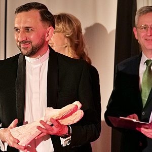 Nieodłącznym i wzruszającym momentem balu było wręczenie prestiżowych statuetek „Aniołów Dobroci” – wyjątkowego wyróżnienia dla osób, które z oddaniem i poświęceniem wspierają misję Caritas. Nie zabrakło także słów wdzięczności dla wszystkich wolontariuszy, którzy w ciszy codzienności, z dala od blasku reflektorów, każdego dnia wnoszą w życie potrzebujących nadzieję i otuchę.