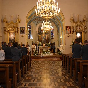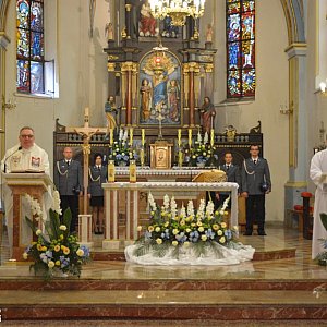 Uroczystość rozpoczęła Msza Święta w Kościele pw. Wniebowzięcia Najświętszej Maryi Panny koncelebrowana przez ks. Prałata Zbigniewa Cabańskiego - kapelana radziejowskiego garnizonu oraz ks. Ireneusza Mrowickiego. Miłym akcentem na zakończenie mszy było podziękowanie za policyjną służbę, złożone na ręce komendantów przez dwie dziewczynki ubrane w tradycyjne kujawskie stroje.
