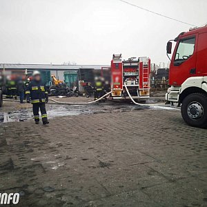 13 zastępów Straży Pożarnej uczestniczy w akcji gaśniczej w Pakości. Pali się pomieszczenie warsztatu wulkanizacji opon zlokalizowane wewnątrz dużego magazynu budowlanego przy ul. Barcińskiej. Z uwagi na lokalizację pożaru i sąsiedztwo innych obiektów sytuacja jest bardzo groźna.