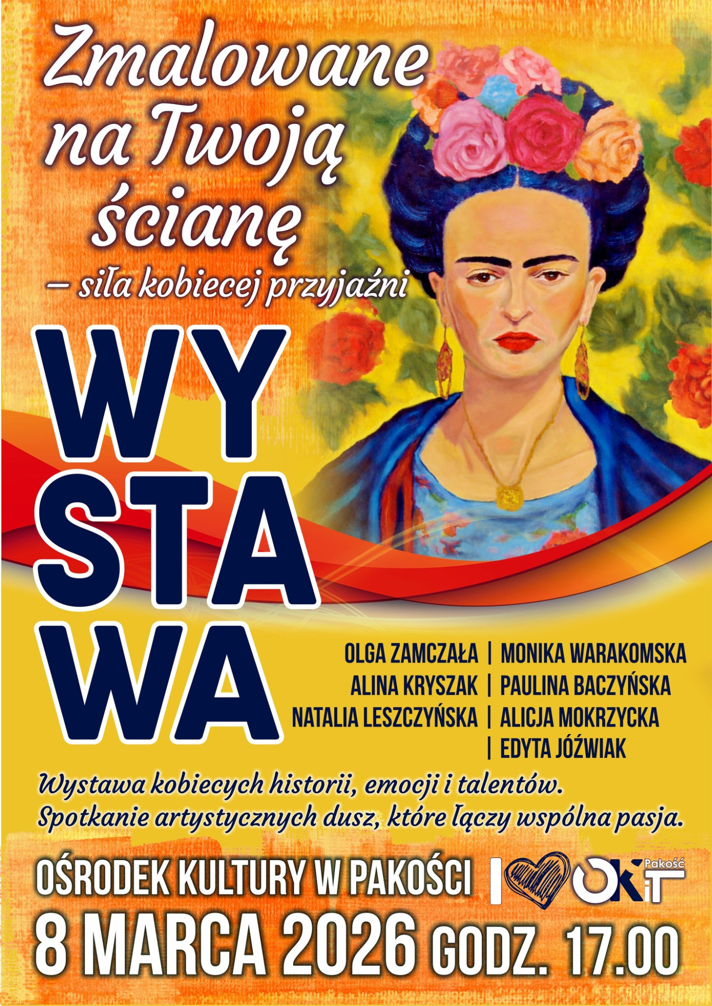 Z okazji Dnia Kobiet Ośrodek Kultury i Turystyki w Pakości zaprasza na wernisaż wystawy malarstwa zatytułowanej „Zmalowane na Twoją ścianę”. Wydarzenie będzie okazją do spotkania z lokalną sztuką i twórczością artystek, które łączy pasja do malarstwa oraz wspólna praca w kręgu malarki i arteterapeutki Olgi Zamczały.