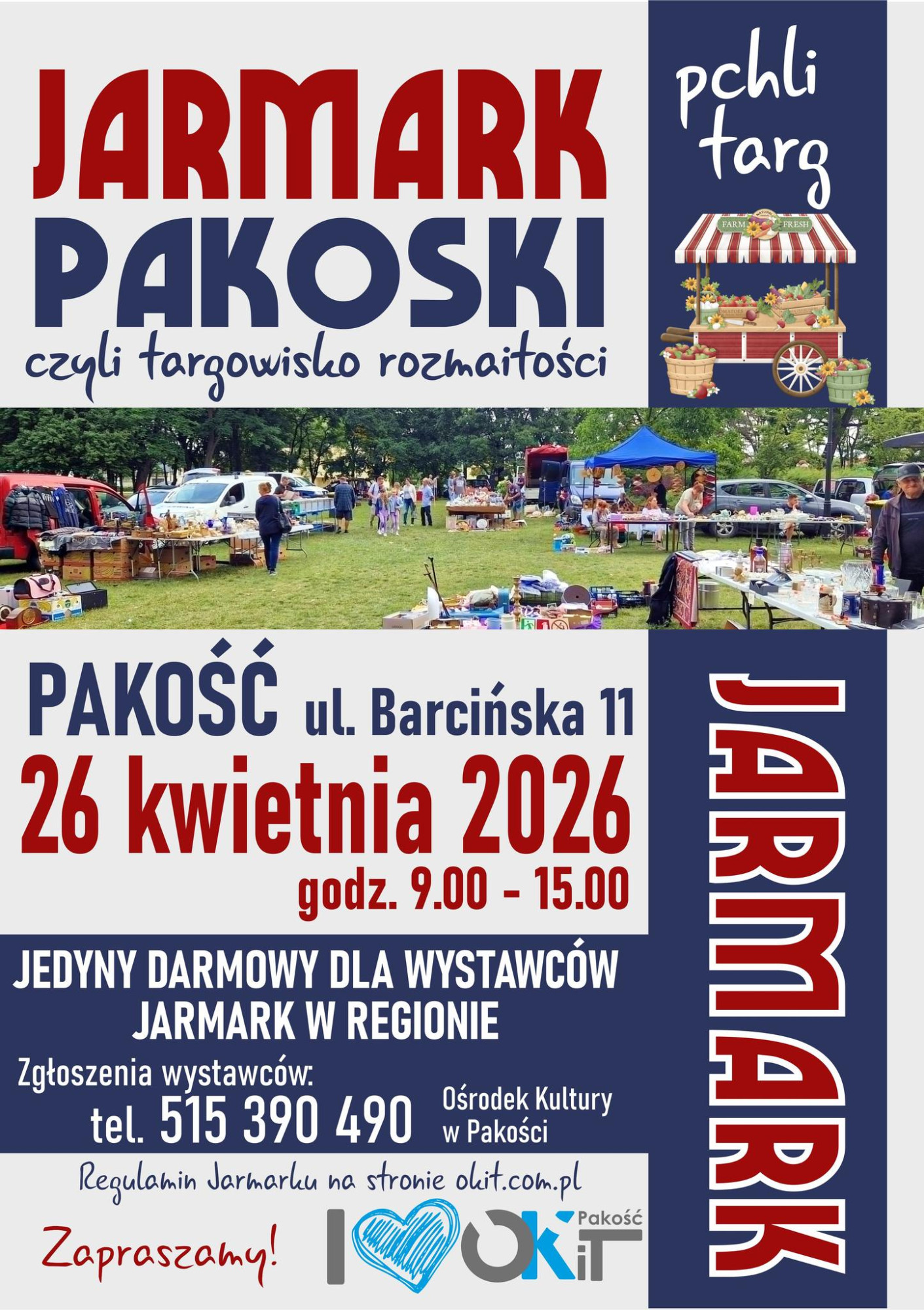 Już 26 kwietnia odbędzie się kolejna edycja Jarmarku Pakoskiego, czyli targowiska rozmaitości. Wydarzenie zaplanowano w Pakości przy ul. Barcińskiej 11, a wszystko potrwa od godz. 9:00 do 15:00.