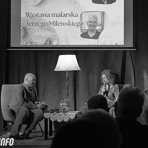 Drugim bohaterem wieczoru był Jerzy Milewski, który przedstawił swoją pierwszą autorską wystawę malarstwa. W zaprezentowanych pracach – obejmujących zarówno obrazy, jak i elementy witrażu – wyraźnie widać związki z lokalnością. Artysta podkreśla, że tworzy z potrzeby serca i z przywiązania do miejsc, które go otaczają.