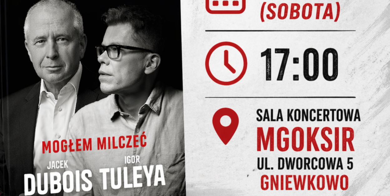 Do Gniewkowa przyjadą dwie rozpoznawalne postaci życia publicznego – sędzia Igor Tuleya i adwokat Jacek Dubois. Spotkanie będzie poświęcone ich wspólnej książce „Mogłem milczeć”, w której autorzy odnoszą się do własnych doświadczeń zawodowych, ale też do zmian zachodzących w państwie i wymiarze sprawiedliwości.