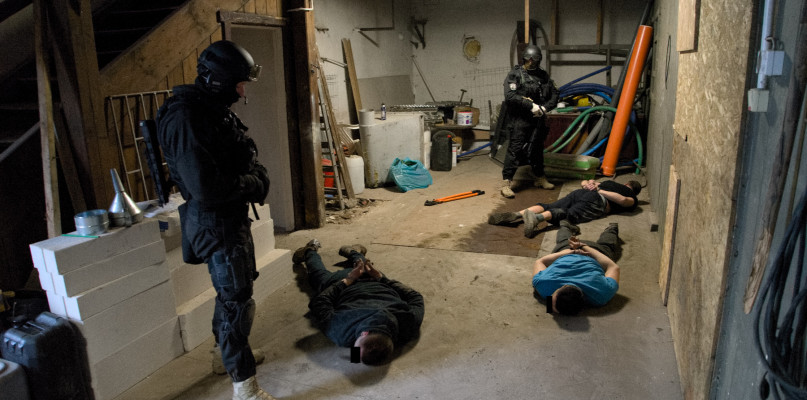 Policjanci z Komendy Wojewódzkiej Policji w Bydgoszczy zwalczający na co dzień przestępczość gospodarczą uzyskali informację, że w Gniewkowie mogą być produkowane nielegalne papierosy. Na tej podstawie wczoraj przed południem, wspólnie z antyterrorystami weszli na teren namierzonej w centrum miasta posesji. Jak się okazało, policjanci zaskoczyli trzech mężczyzn w trakcie produkcji.