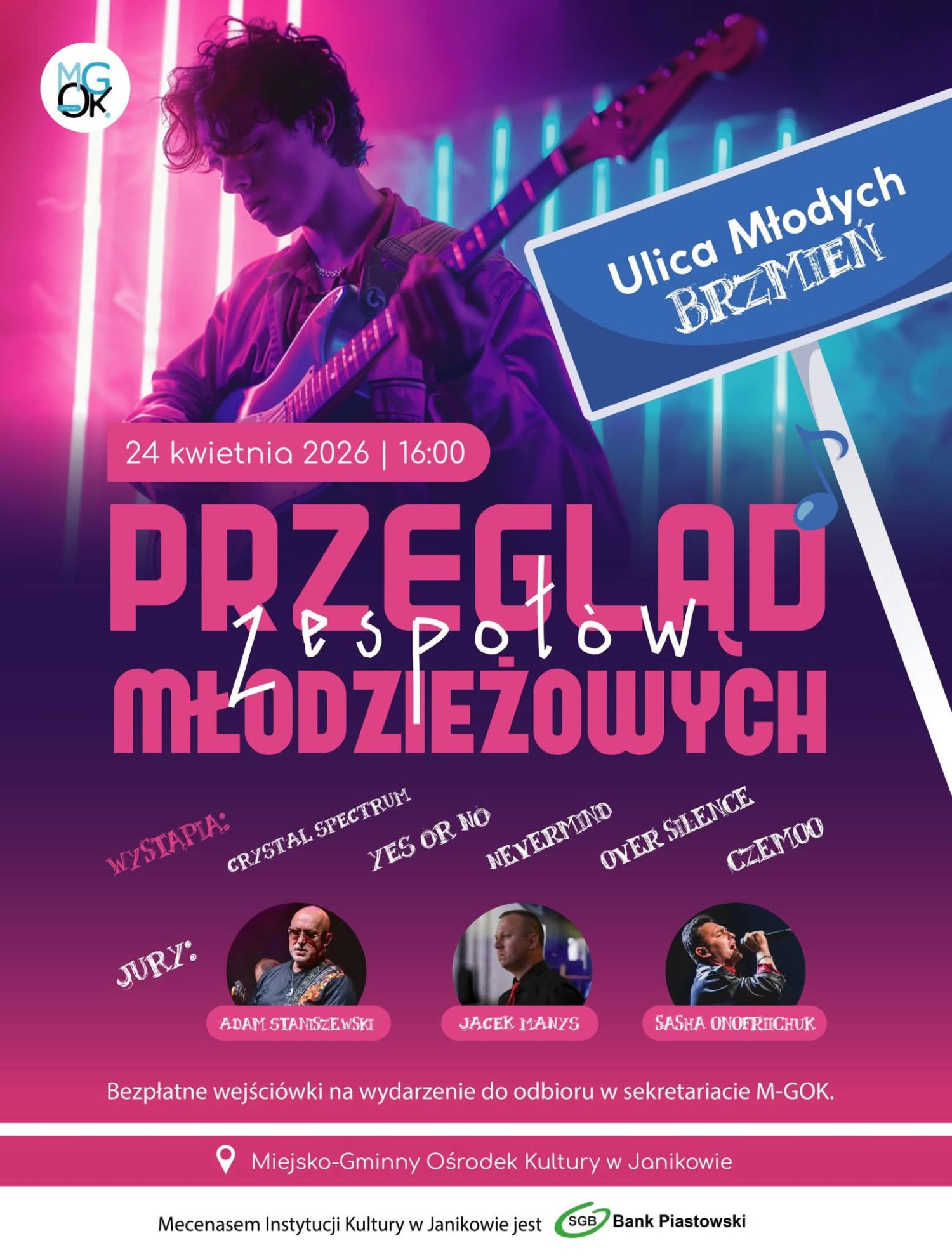 Dla publiczności przygotowano bezpłatne wejściówki, które można odbierać w sekretariacie M-GOK w Janikowie. To dobra okazja, by posłuchać młodych wykonawców na żywo i sprawdzić, kto w przyszłości może namieszać na muzycznej scenie.