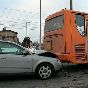 W Janikowie szkolny autobus zderzył się z osobówką. Uwaga na utrudnienia