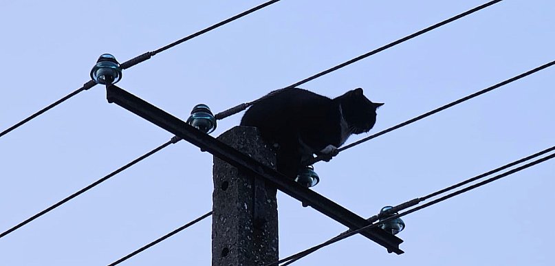 Dwa zastępy straży pożarnej i wóz pogotowia energetycznego z podnośnikiem zajmowały się kotem.