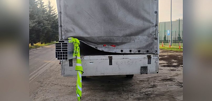 Patrol ruchu drogowego zatrzymał dostawczy samochód z zasłoniętą tablicą rejestracyjną i światłami.