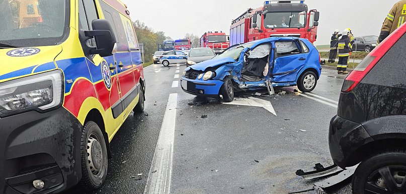 Zderzyły się tam dwa samochody osobowe: Volkswagen Passat oraz Toyota Yaris.