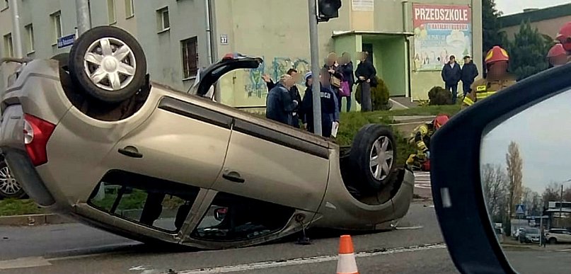 Kierująca dacią kobieta została przekazana pod opiekę zespołu ratownictwa medycznego.
