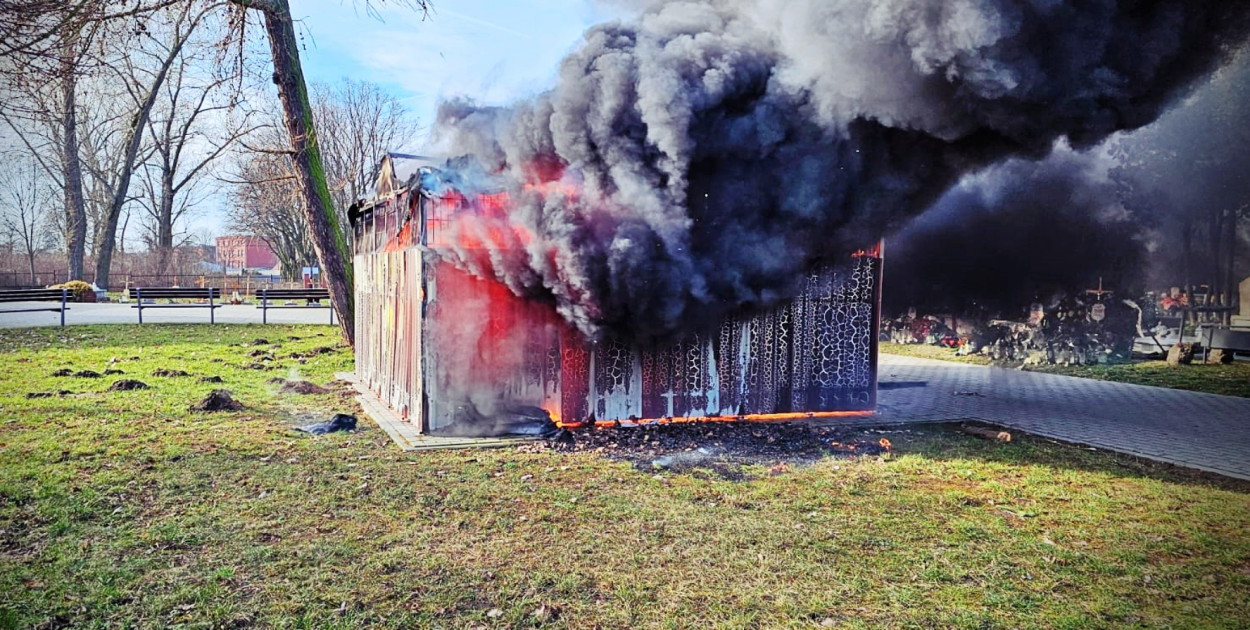 Z nieustalonych na razie przyczyn w ogniu stanęła zadaszona wiata na odpady na cmentarzu komunalnym przy ul. Marcinkowskiego.