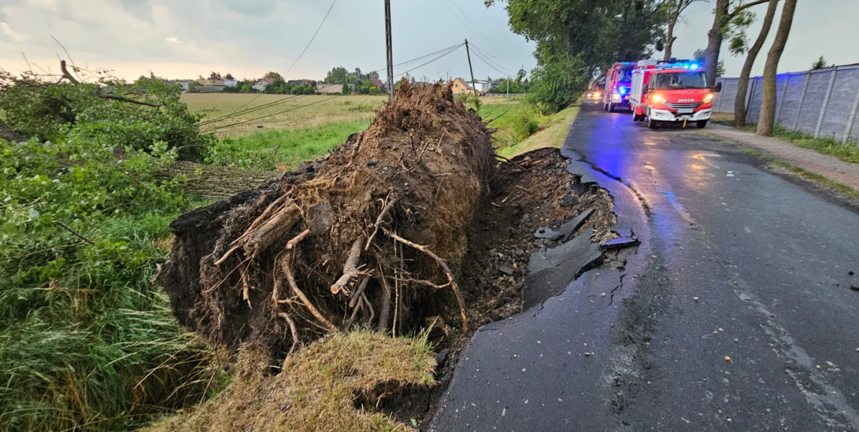 Przed godz. 19.00 w Złotnikach Kujawskich wichura powaliła drzewo, które zerwało przydrożną linię energetyczną. Poważnie uszkodzona jest część jezdni.