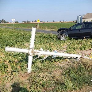 Kolejna kolizja, na tym samym skrzyżowaniu zdarzyła się po godzinie 16. Tym razem 47-latka kierująca kią, wymusiła pierwszeństwo na bmw. Po uderzeniu bmw dachowało i uszkodziło przydrożny krzyż.