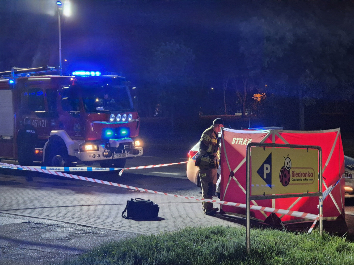 79-letni mężczyzna zmarł przy wjeździe do Biedronki na ul. Świętokrzyskiej.