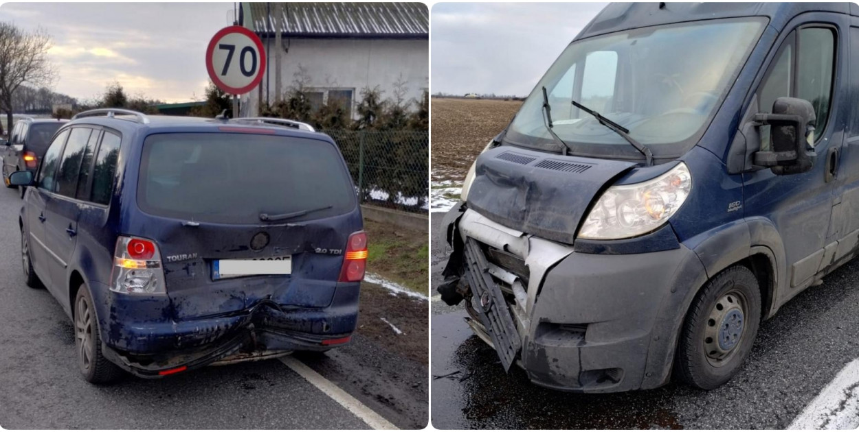 Do zdarzenia doszło wczoraj po południu w Czołowie na drodze krajowej nr 62. Kierujący fiatem ducato 61-latek, nie zachował właściwej odległości i uderzył w tył, skręcającego volkswagena. Szczęśliwie nikt nie odniósł obrażeń, a kierowcy pojazdów byli trzeźwi.
