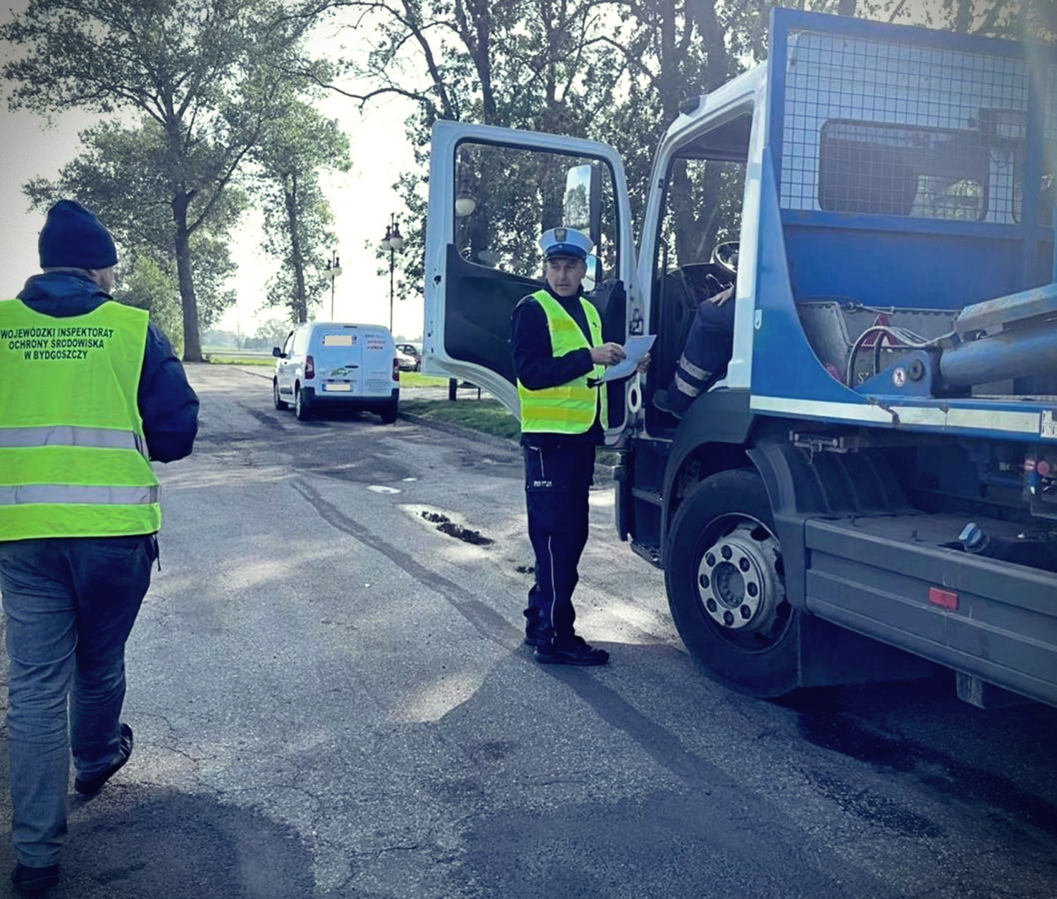 Na drodze krajowej nr 62 w Płowcach radziejowscy policjanci wydziału ruchu drogowego przeprowadzili wspólną akcję z inspektorami Wojewódzkiego Inspektoratu Ochrony Środowiska z Delegatury we Włocławku.