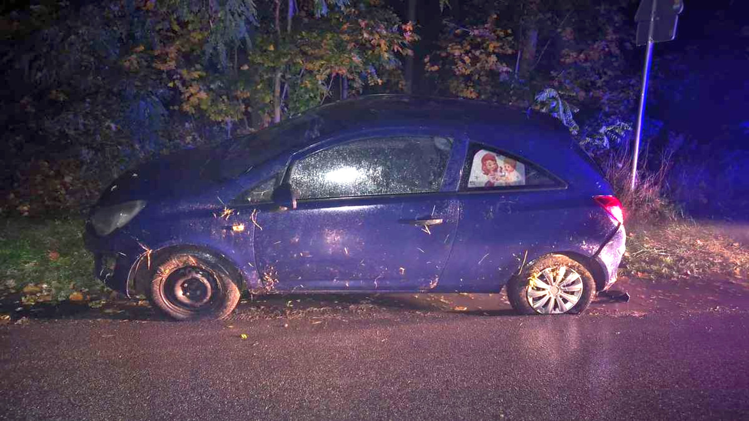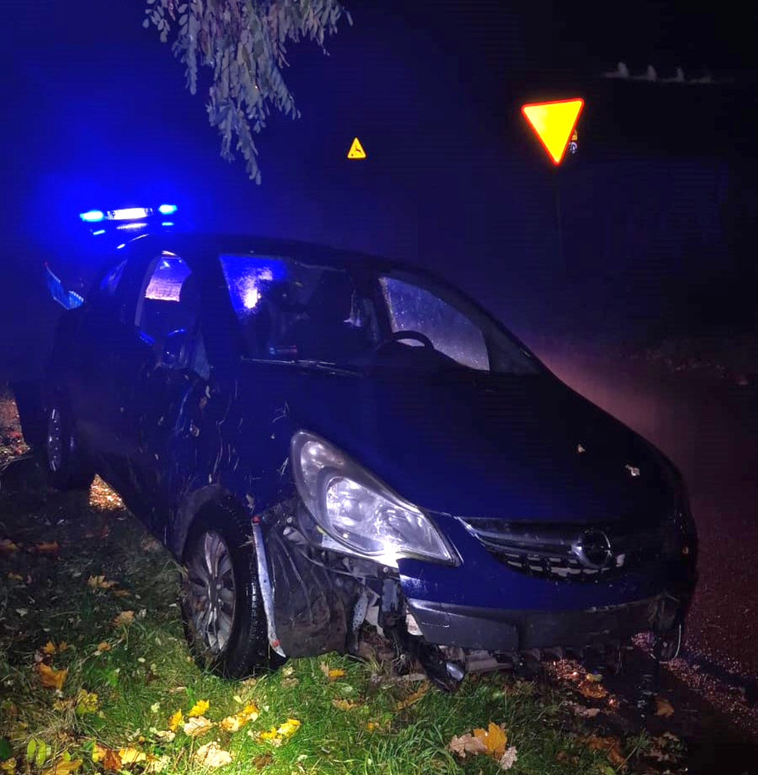 Jak ustalili funkcjonariusze, 26-letni kierowca opla corsy nie dostosował prędkości do warunków panujących na drodze, w wyniku czego stracił panowanie nad pojazdem i wypadł z jezdni na pobocze.