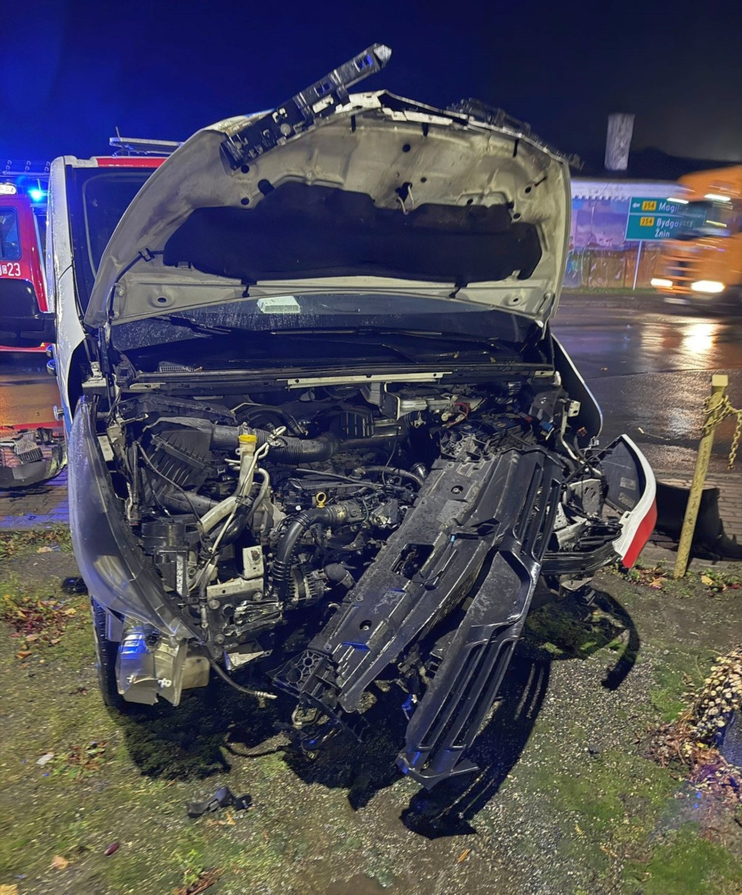 Na szczęście zarówno sprawca kolizji, jak i zespół medyczny nie doznali żadnych obrażeń. Policjanci ukarali kierowcę mandatem karnym w wysokości 1500 złotych za naruszenie zasad bezpieczeństwa w ruchu drogowym.