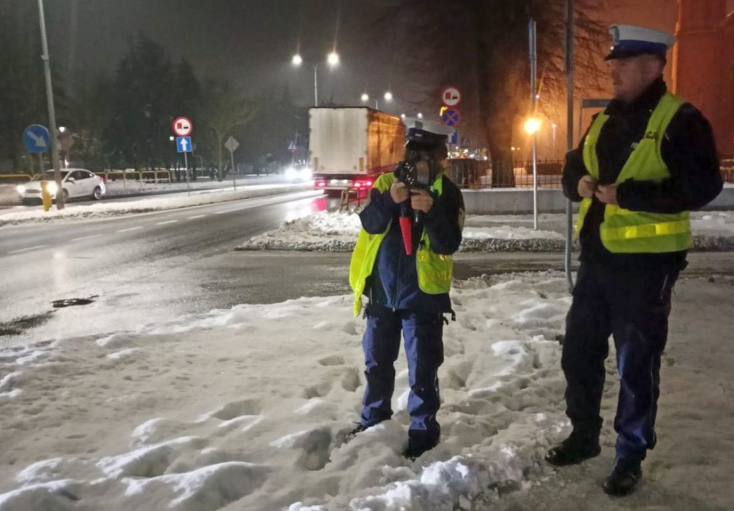 Warunki drogowe również nie sprzyjały szybkiej jeździe – padający śnieg, błoto pośniegowe i śliska nawierzchnia wymagały szczególnej ostrożności. Policjanci apelują, by w takich warunkach zdjąć nogę z gazu, zwiększyć odstęp od poprzedzającego pojazdu i dostosować prędkość do sytuacji na drodze.