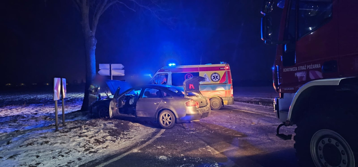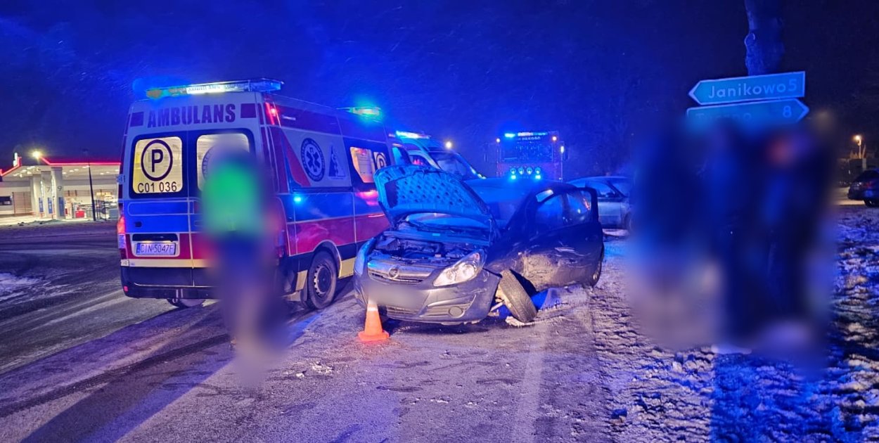 Do groźnego zdarzenia drogowego doszło wczoraj około godziny 22.00 na drodze wojewódzkiej nr 252, na 64. kilometrze trasy, w rejonie Rybitw i Pakości, przy stacji Orlen. Zderzyły się tam samochody marki Opel i Audi.